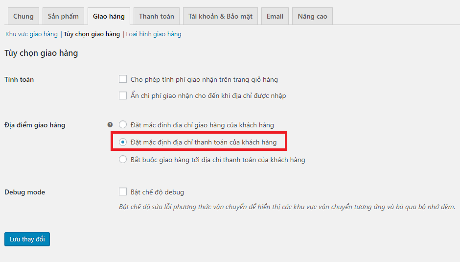 Riêng mục con Tùy chọn giao hàng, bạn cấu hình như ảnh dưới: