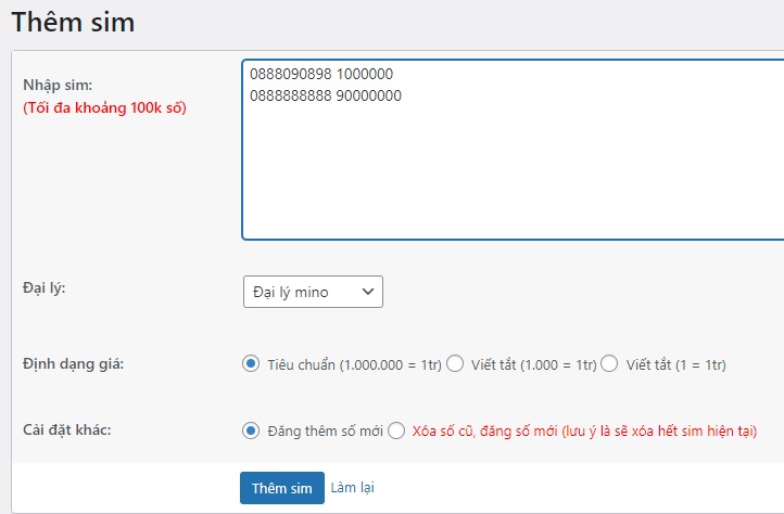 Theme WordPress bán sim số, giao diện web bán sim số đẹp mắt bằng WordPress , upload sim hàng loạt, tự động nhận biết loại sim , bộ lọc tìm kiếm sim. Bạn cần một web về sim số, web mua bán sim online thì đây là sự lựa chọn tốt cho bạn, giá cả phải chăng, hỗ trợ đầy đủ những công cụ cần thiết để bán sim.