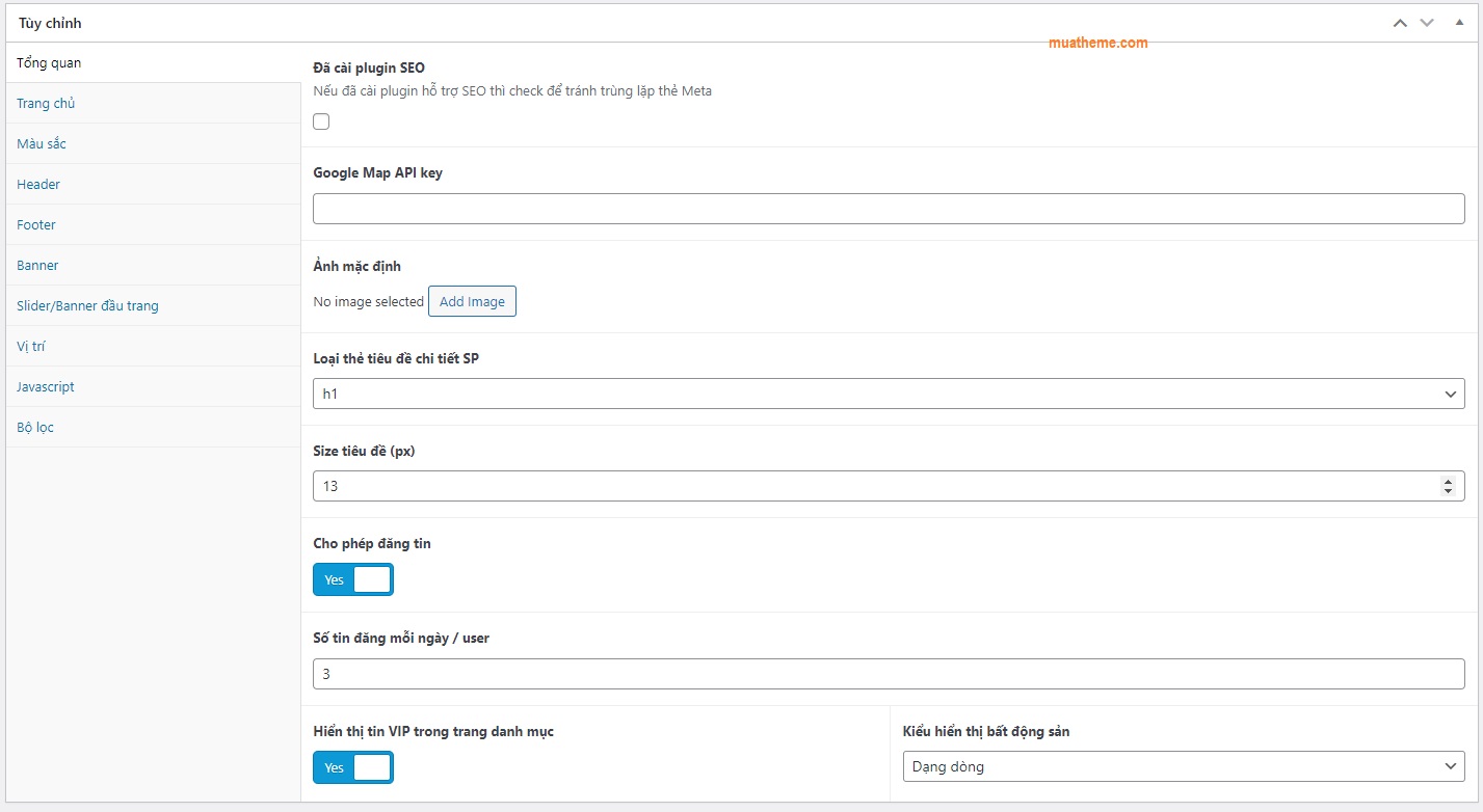 Nếu quý khách muốn thay đổi form tìm kiếm dạng slider hay banner thì có thể cấu hình lại trong trang quản trị