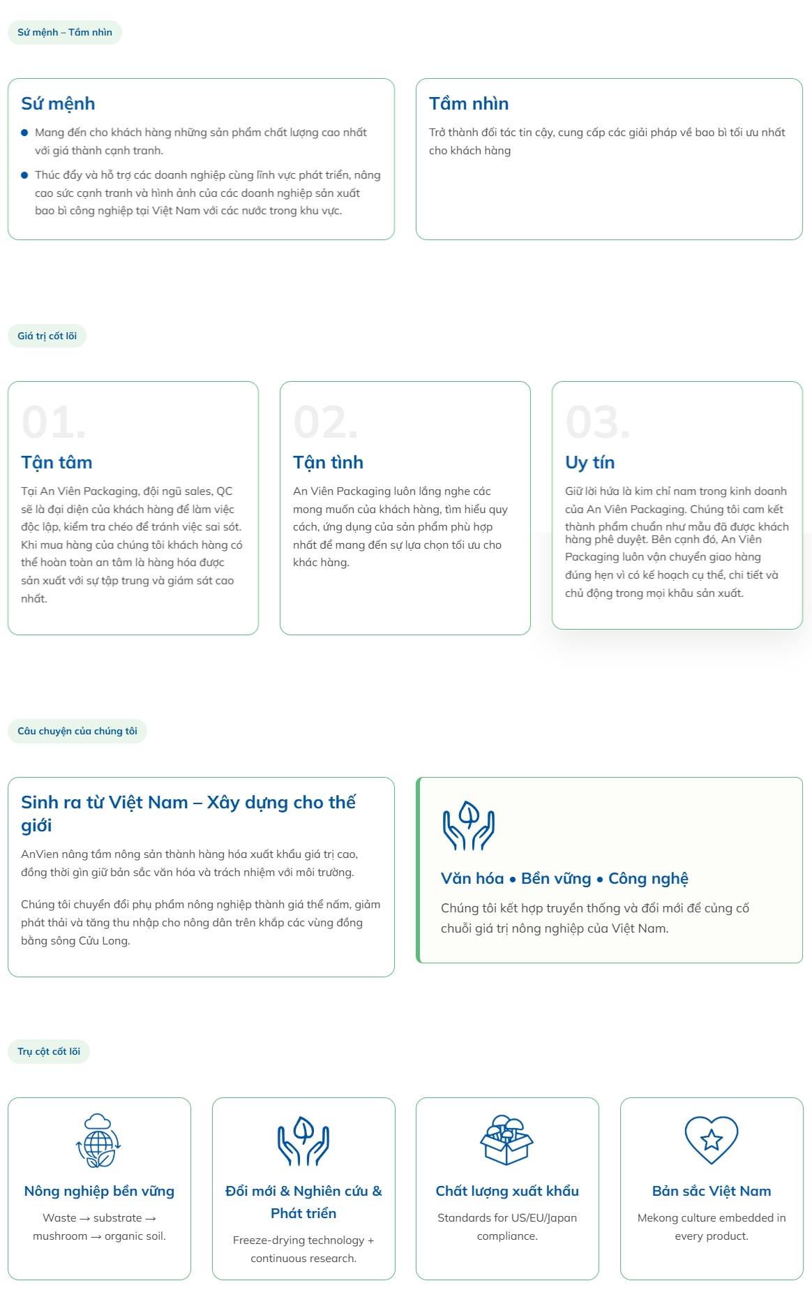Nội dung, form liên hệ, bảng giá trị cốt lõi, công nghệ,… đều được bố trí gọn gàng, không rối mắt, phản ánh đúng tinh thần của doanh nghiệp kỹ thuật cao.