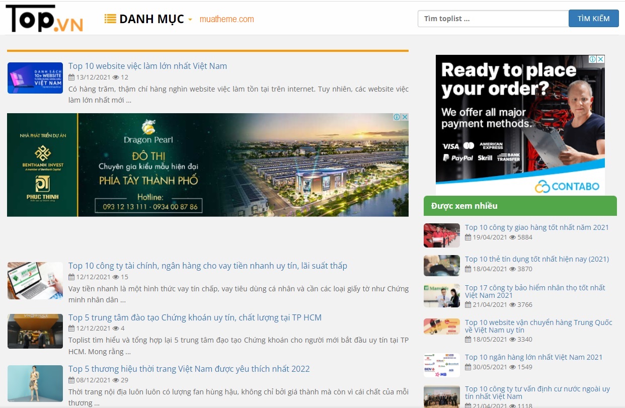 Theme WordPress giống TopList.vn. Phù hợp làm trang web tổng hợp, đánh giá , review sản phẩm – dịch vụ dạng top list, affiliate tiếp thị liên kết…