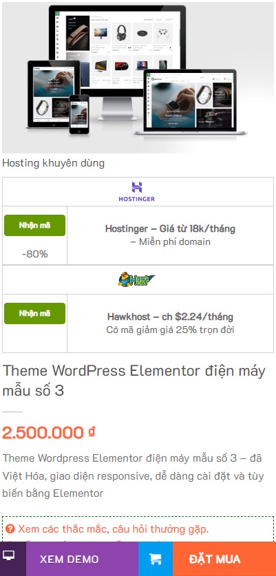 Tại trang chi tiết theme, click ĐẶT MUA