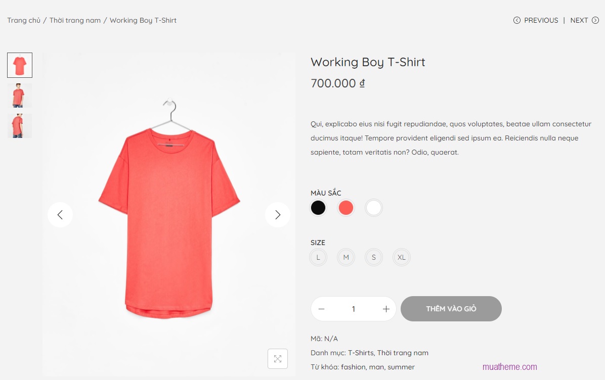- Hỗ trợ tốt cho woocommerce: ajax add to cart, sidebar cart, hỗ trợ hiển thị biến thể dạng màu sắc, size …
