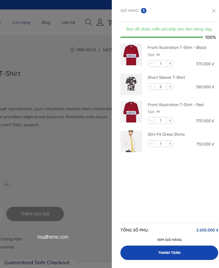 Sidecart bên trái (xuất hiện sau khi bấm nút thêm vào giỏ hàng)
